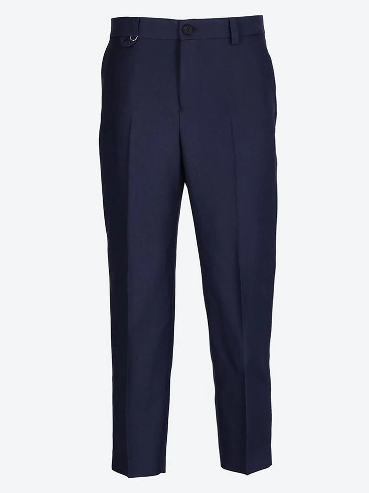 Trousers with cropped silhouette emblematic of the season. Realised in multicolour wool twill.